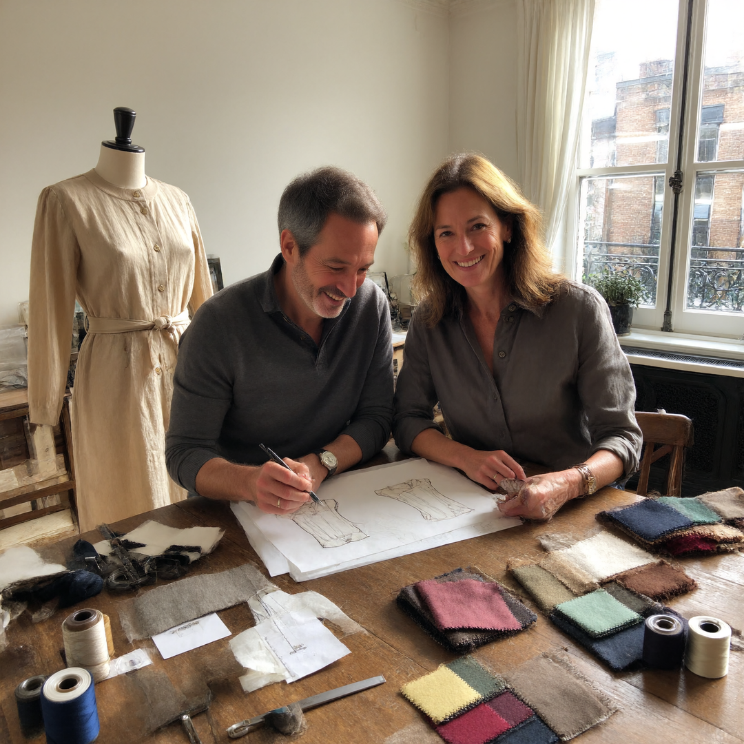 From a young age, James and Sarah were drawn to design, textiles, and the way clothing can influence confidence. Both studied fashion, design and business before building individual careers within the UK fashion industry.
