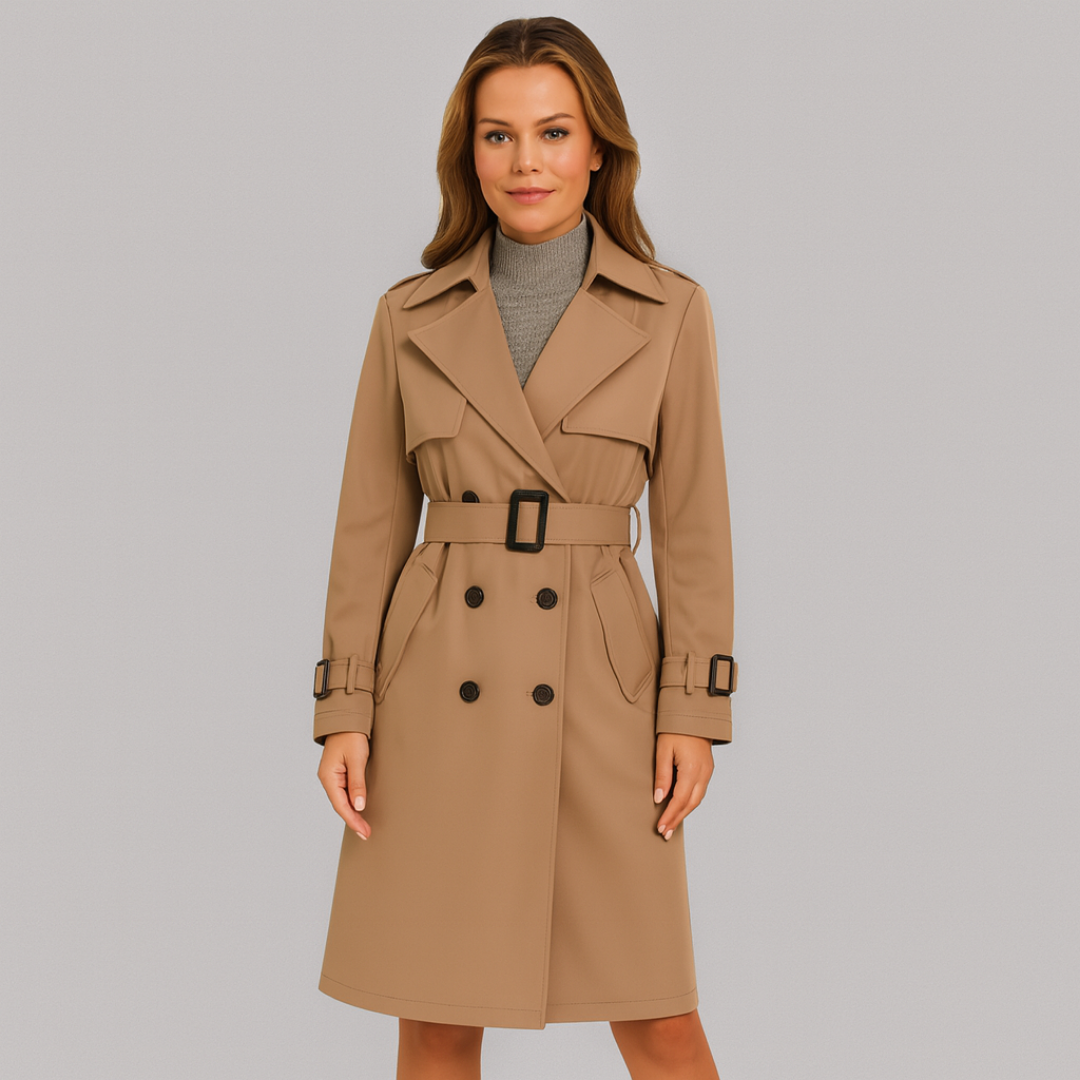 Cleo - Classic Trench Coat With Detachable Belt & Pockets